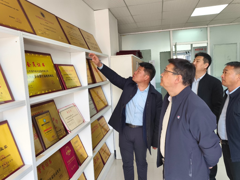 在2025年3月18日,暖阳倾洒,临沭县玉山镇党委书记袁军、人大主任李俊江、综合执法办主任杨春携驾驶员一行四人,满怀着对企业发展的关切与期待,莅临瑞华制冷参观指导。山东瑞华制冷设备有限公司总经理张瑞峰一早便在公司楼下严阵以待,脸上洋溢着热忱,以十足的诚意迎接贵宾的到来。